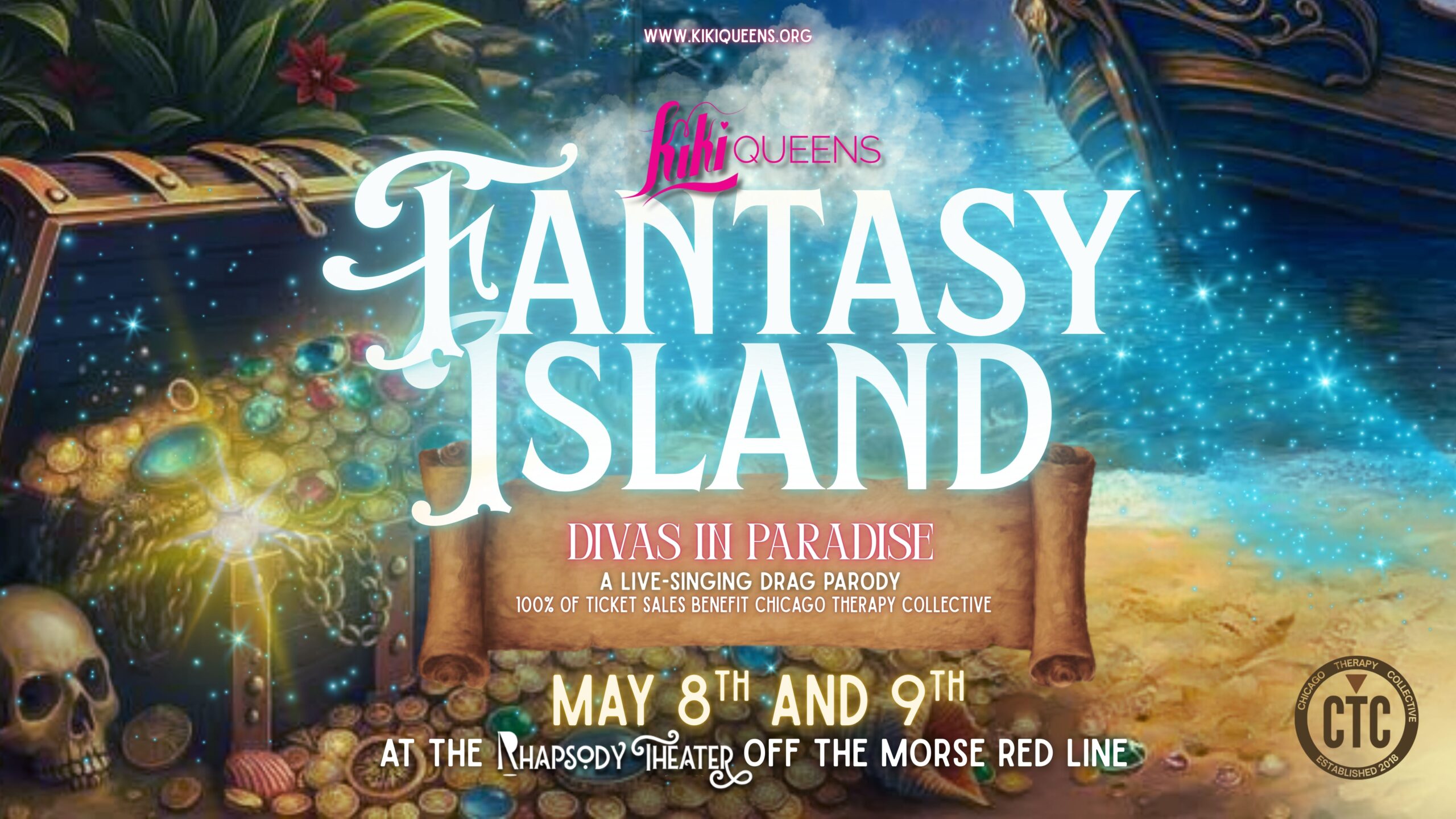 When a mismatched crew of castaways washes ashore on a mysterious uncharted island, the last thing they expect to find is a troupe of globe-trotting burlesque showgirls, swashbuckling gay pirates, and a temperamental volcano goddess. Fantasy Island: Divas in Paradise is a campy, adults-only musical extravaganza packed with enough sequins, show tunes, and double entendres to fill a treasure chest.